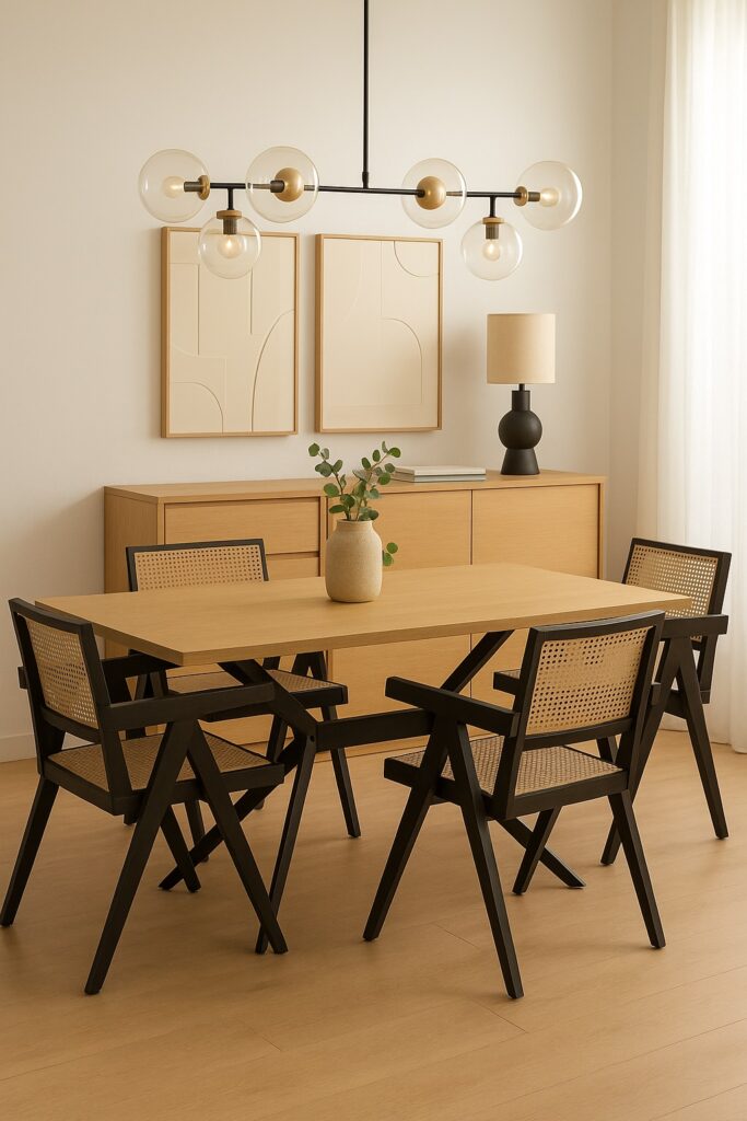1 x dining table 4 x chairs 1 x sideboard 1 x pendant light