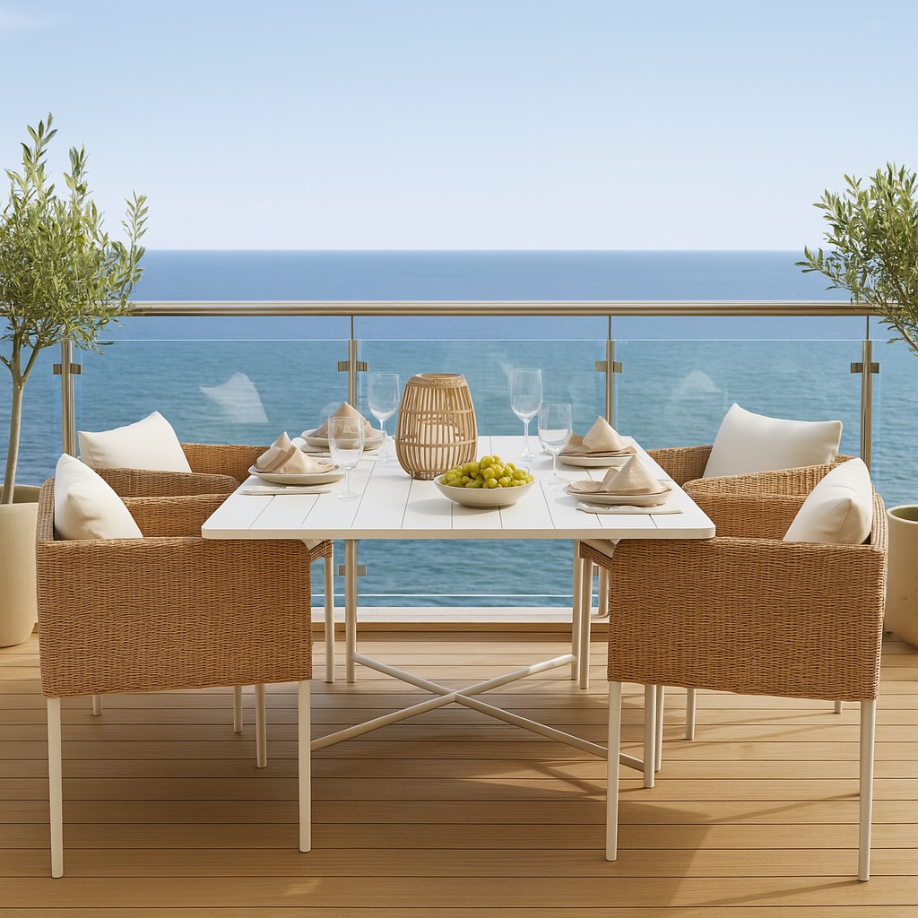 Extend your lifestyle outdoors with our coastal-inspired terrace design. Sink into weather-resistant cushions framed by elegant wooden structures, all set against the serene backdrop of the sea. It’s the perfect blend of relaxation and sophistication.